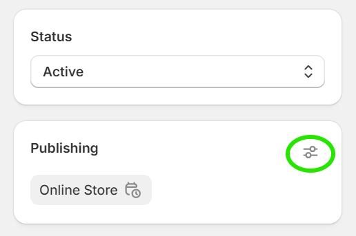 3. Once you navigate to the admin product page for the product you would like to update, click the "Filters" icon on the "Publishing" section on the right-hand side.