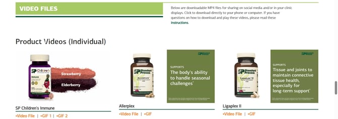If you are already logged into your Standard Process account, you can find them by clicking "Resources" on the main navigation menu, then clicking "Digital Assets."